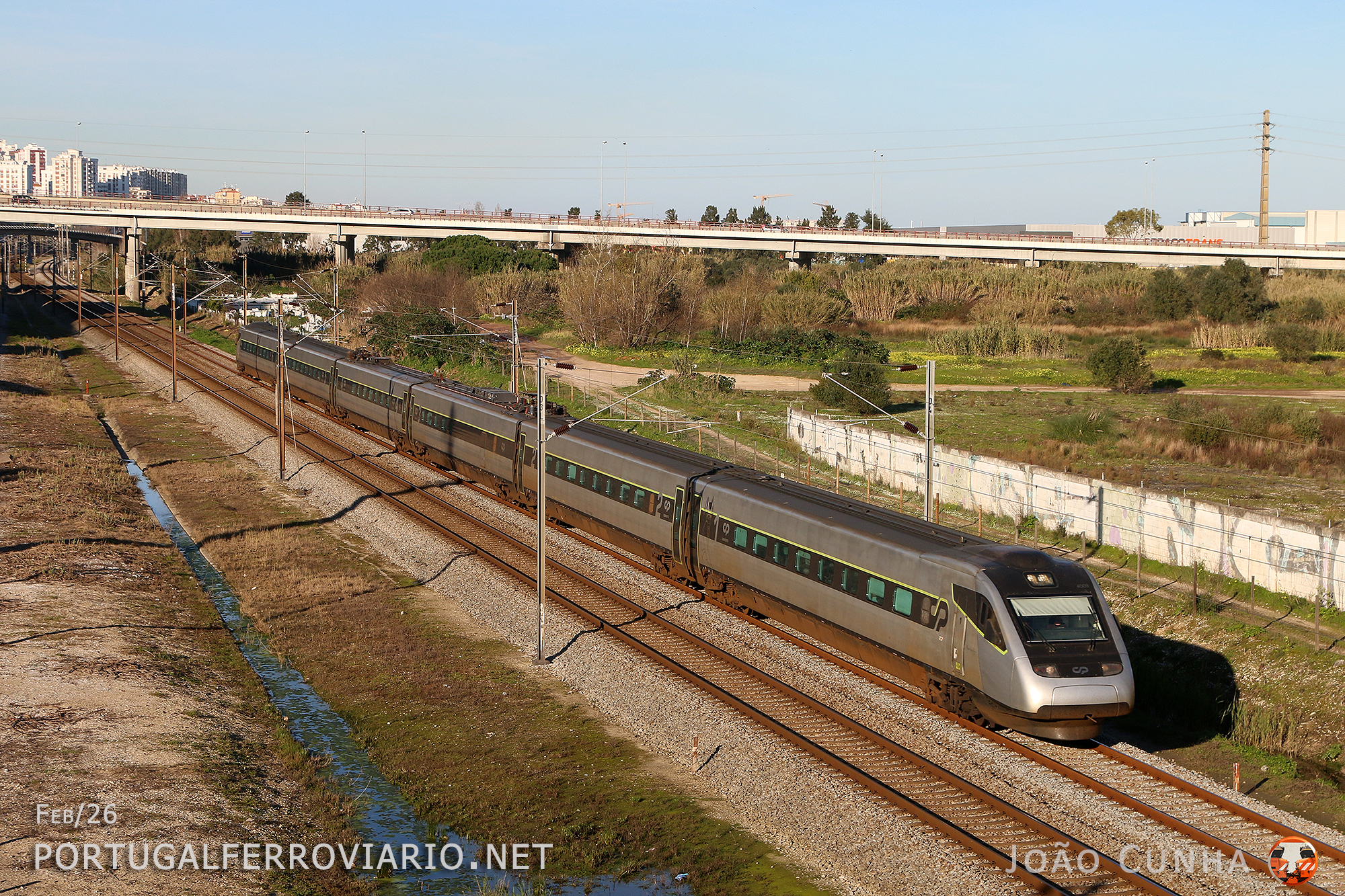 Alfa Pendular 132 Braga - Lisboa with unit 4009 speeds through Santa Iria
