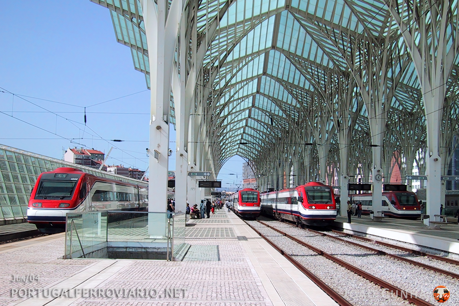 From the left to the right, 4002 with AP 133 Lisboa - Braga, 21133 Lisboa - Porto, 182/3 Lisboa - Faro and 134 Braga - Lisboa, seen at Lisboa-Oriente