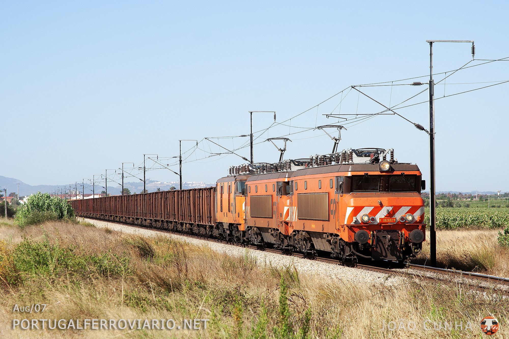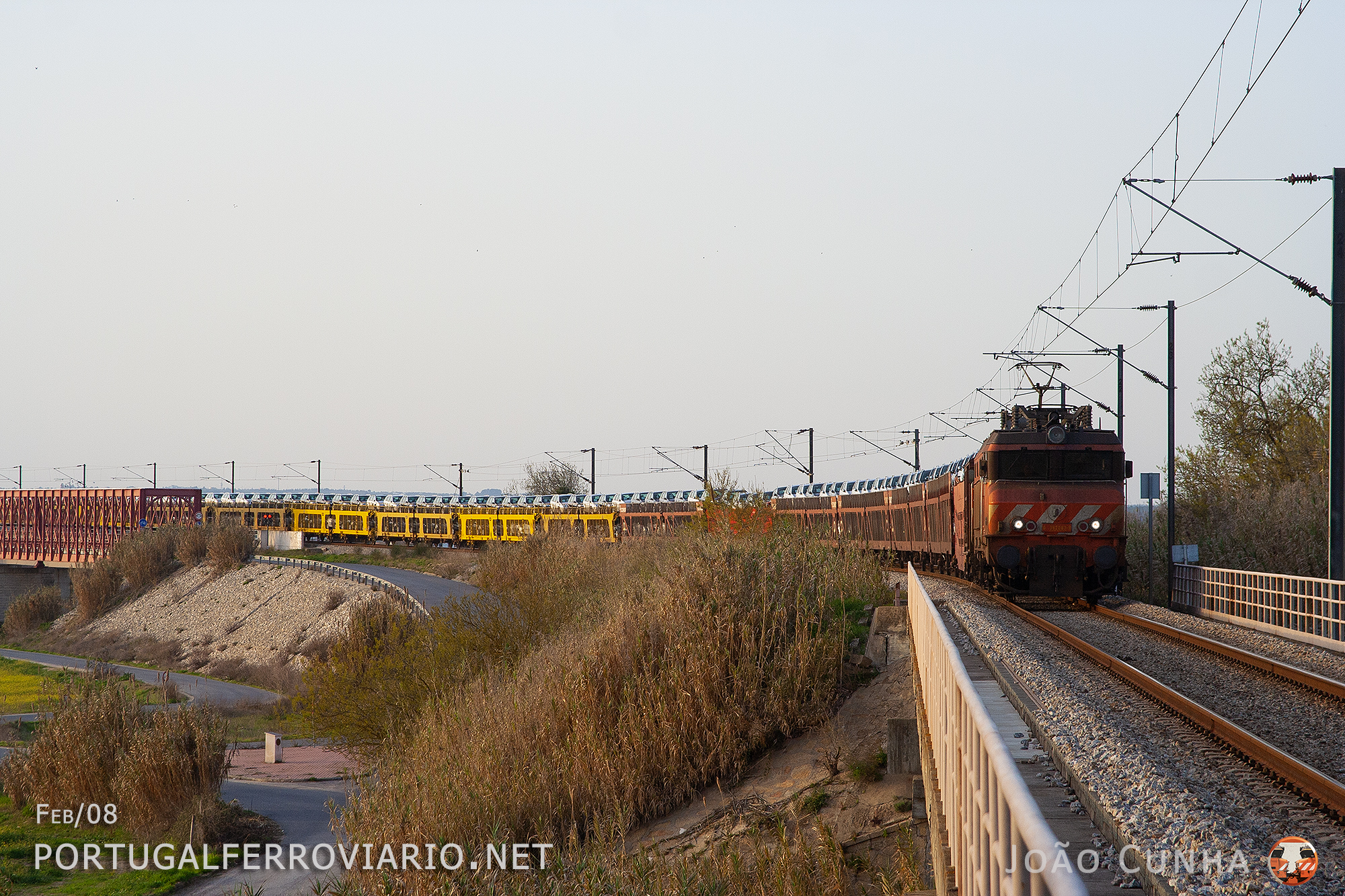 Crossing the river Tagus near Muge, CP 2602 hauls a Renault train from Venta de Baños to Praias Sado
