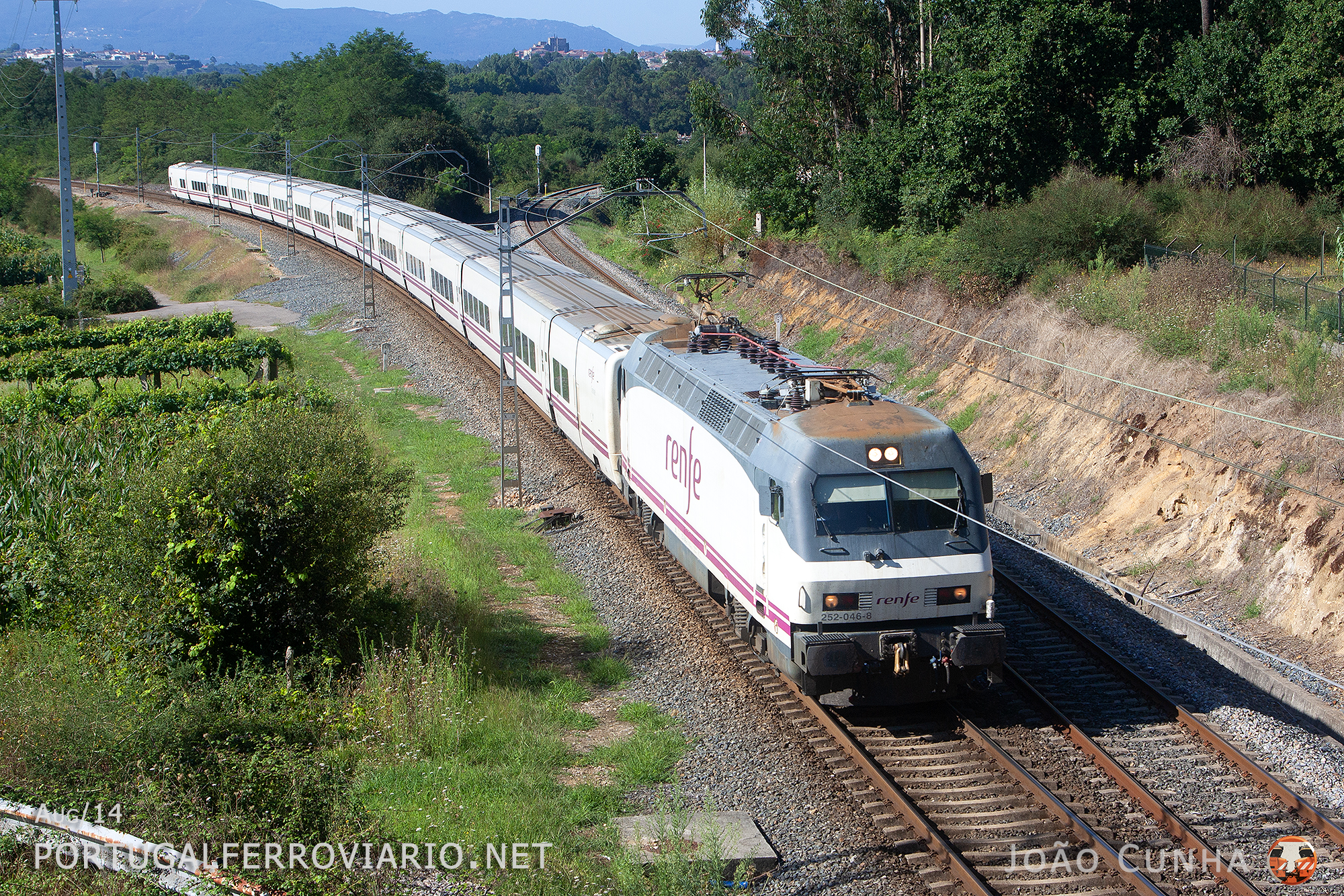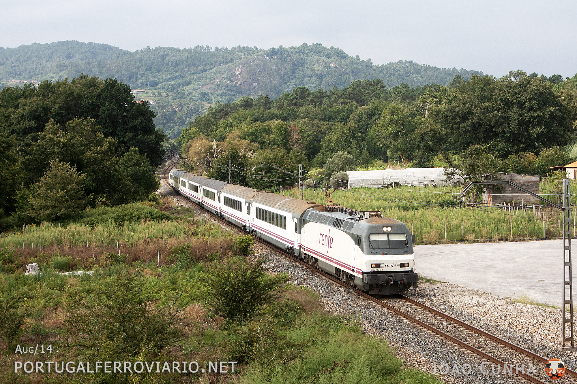 Near Barbantes, 252.038 pulls the 280 Arco train between Vigo / Coruña and Bilbao / Hendaye